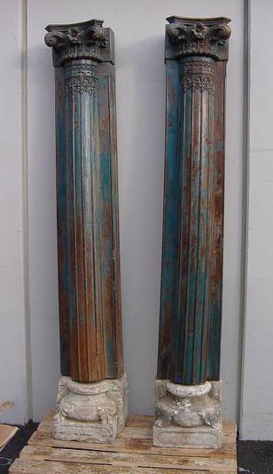 Diese im Barock von Hand geschnitzten Holz Halbsäulen stehen auf Steinsockeln die in Handarbeit vom Steinmetz gemacht wurden und zeigen in jeder Einzelheit deutlich wie aufwändig und akkurat damalige Meister ihr Handwerk beherrschten.