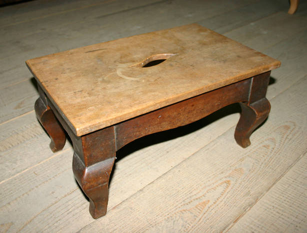 Fußbänkchen mit Säbelbeinen, Obstholz Kirsch dunkel